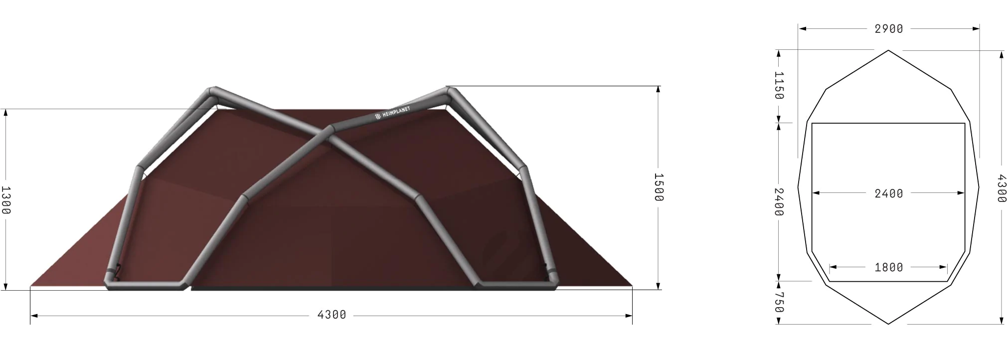 広さ: 9 m² / 96.9sq. ft. (インナーテント: 5.8 m²)