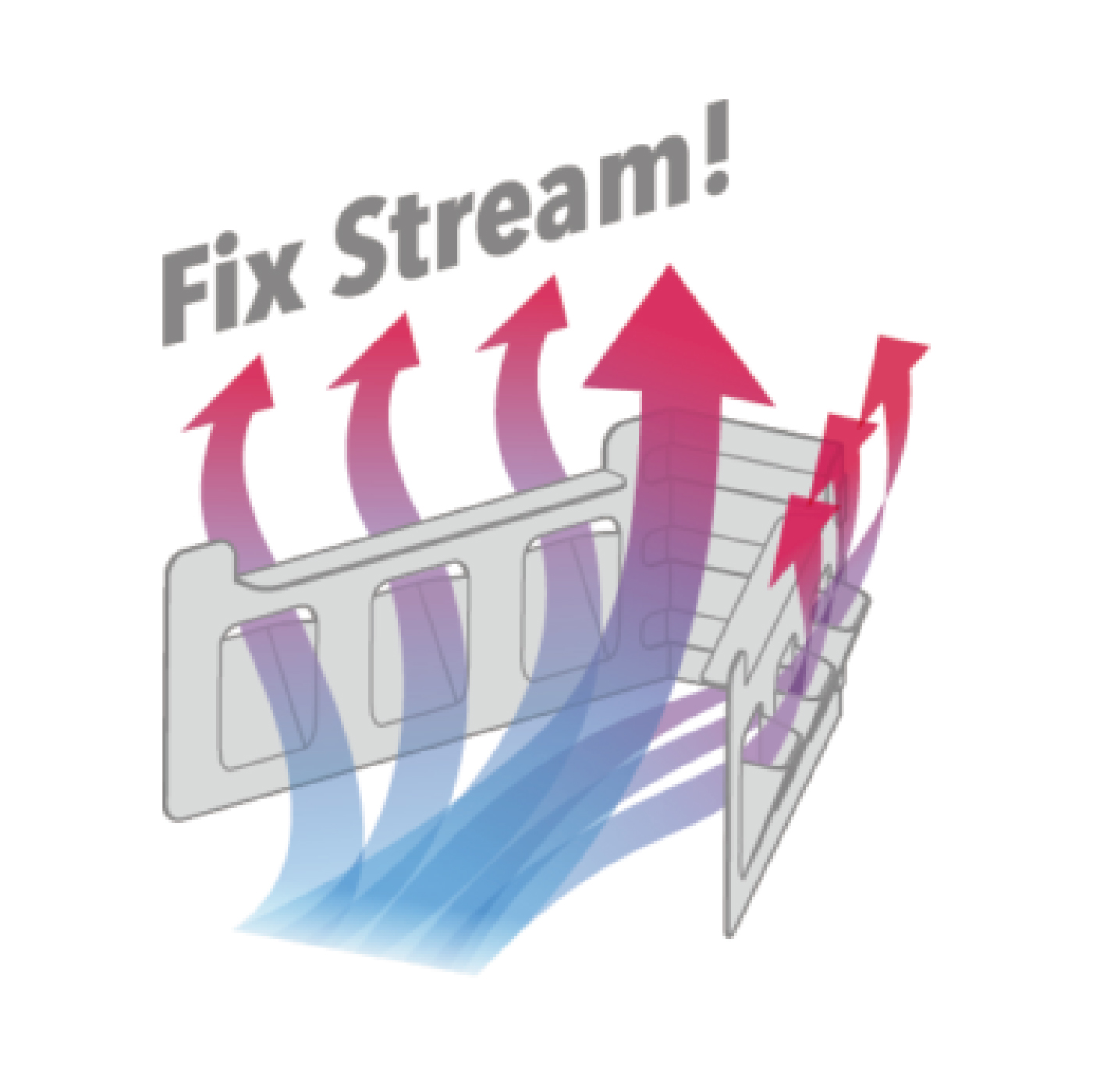 ストリームベースで気流を整え、ドラフト効果と二次燃焼でダイナミックな炎が楽しめます。