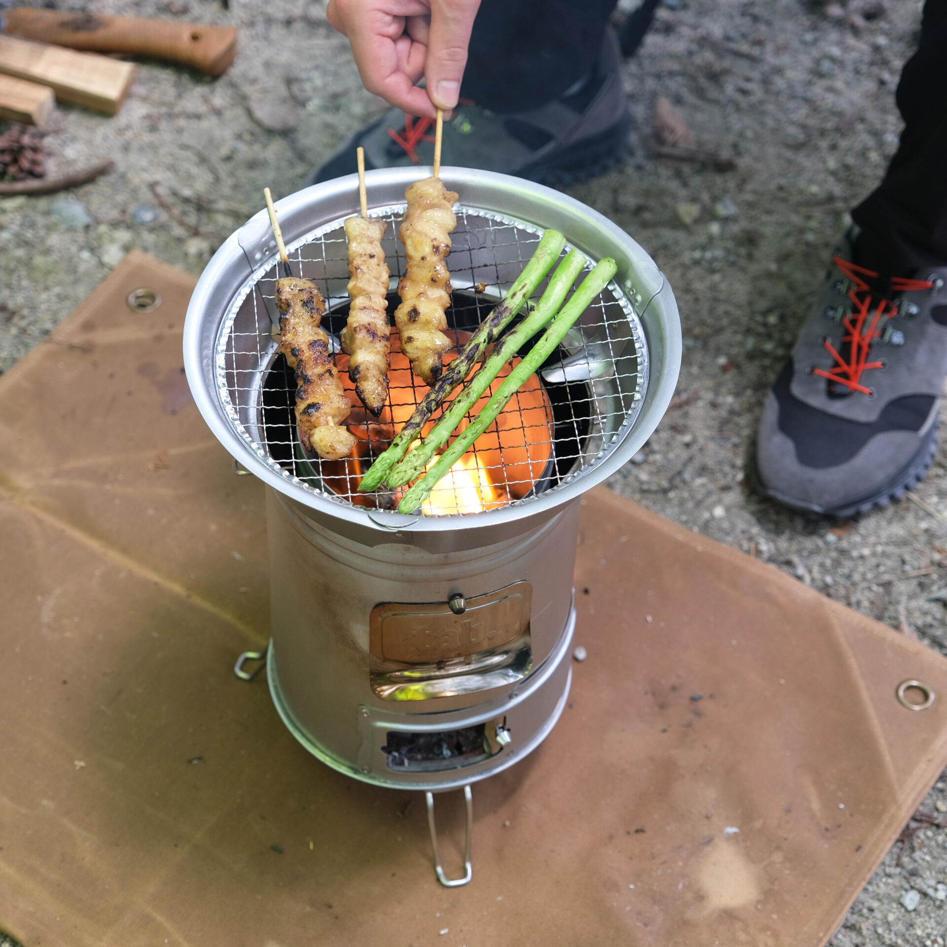 燃焼筒の上段にも網がついて、少ない燃料でも楽しめるように。